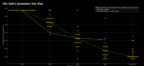 与此同时,季度预测显示美联储官员预计明年将降息75个基点,促使交易员几乎笃定3月会降息。