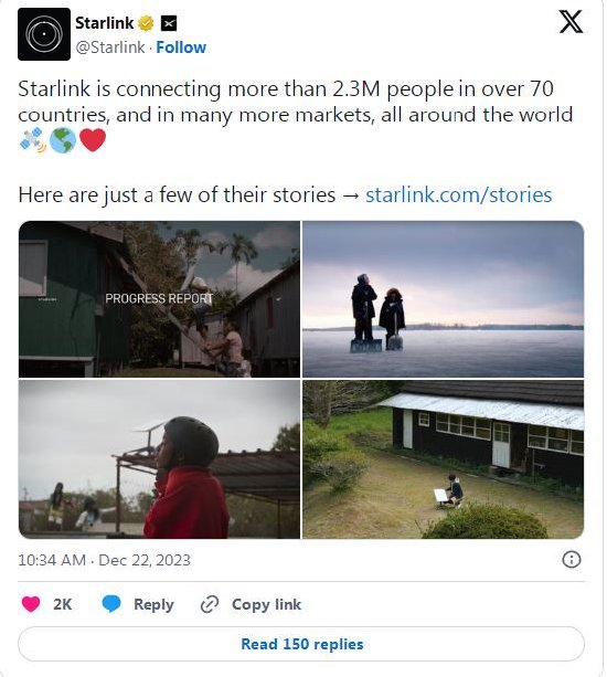 SpaceX的星链(Starlink)部门周四宣布,其全球用户数量突破了230万。