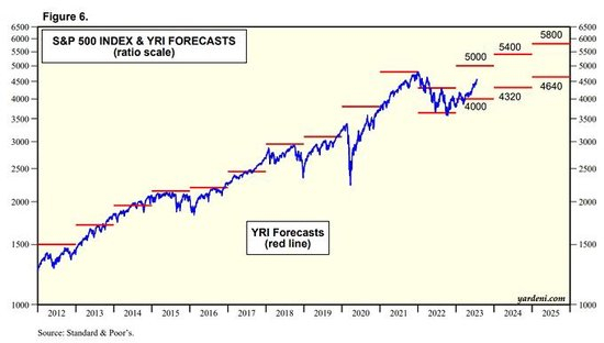 Yardeni Research总裁Ed Yardeni预测,到2025年底,标普500指数将达到新的高度,可能会飙升至6000点,主要归功于美国经济的走强。他在最近的一份新闻稿中表示,