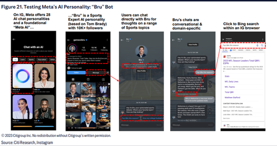 Meta的集成个人助理:Meta最近推出的Meta AI,集成28个生成式AI聊天机器人,比如基于Kendall Jenner的Billie和Tom Brady的Bru,以及推出的开发者平台AI Studio,几乎每个名人和中小型企业都可以训练一个与他们相似的助理。