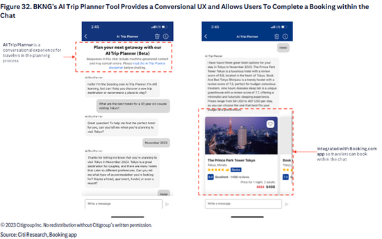 花旗认为,GAI可能会成为在线旅游行业的一个关键主题,预计新型AI工具将带来更高的参与度和转化率,从而提升销售和营销效率,并改善盈利能力。