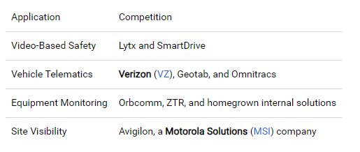 Samsara 在一个高度分散的行业中竞争,大多数竞争对手只为特定行业或客户提供解决方案。在该公司的2022年 10-K中,该公司在每个应用程序中确定了其竞争对手。