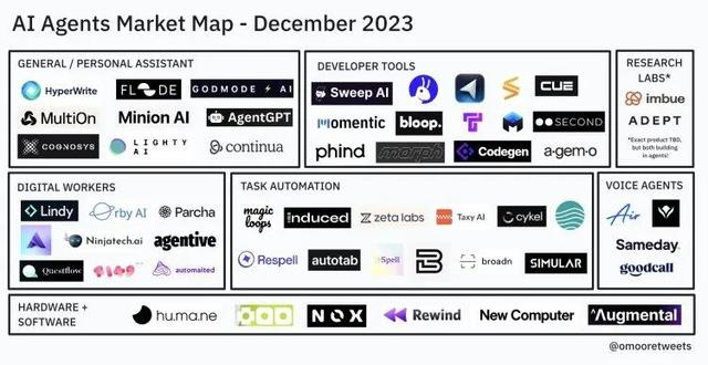 以下是Olivia Moore的AI Agent Market Map,我们从中选了20种最值得关注的AI Agent,介绍了它们在不同领域的神奇应用。