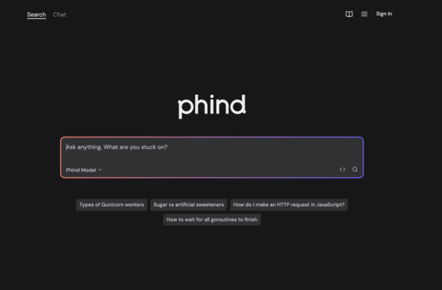 Phind 是一款智能搜索引擎和助手。它使用生成式人工智能,在几秒钟,而不是几小时内,快速为你提供所需的答案。