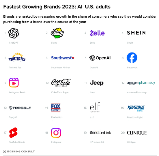 美国市场调研公司Morning Consult发布的“2023年全美十大增长最快