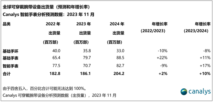 Canalys:预测2024年智能手表出货量将以17%增长率强势反弹