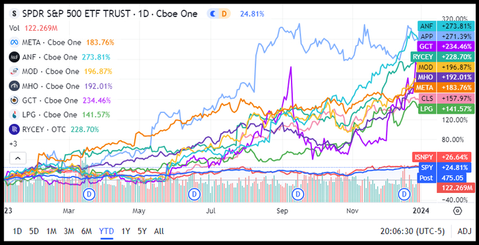 我的2024年十大精选股票在2023年的表现也优于标准普尔500指数: