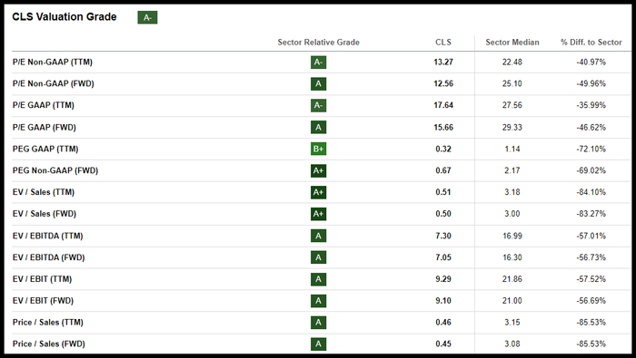 天弘公司是全球供应链解决方案的领导者,是一家专注于技术和利用人工智能趋势的顶级电子制造服务公司。CLS的估值等级为A-,交易价格极低,显示出出色的基本指标,其中包括15.66倍的远期市盈率(相对于行业中位数的29.33倍),以及0.67倍的远期PEG(与行业中值相比,两者相差69%)。