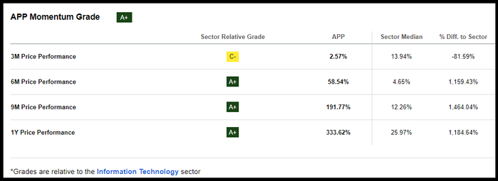 AppLovin经历了巨大的增长,包括出色的一年价格表现,季度业绩显着优于行业中值同行。尽管APP目前的交易价格相对较高,但其最重要的远期PEG率为0.64倍,而该行业的2.17倍则与该行业相差-70%。AppLovin继续获得市场份额,连续的盈利表现就证明了这一点。除了过去90天内有14名分析师上调预期之外,APP第三季度每股收益为0.30美元,同比增长0.03美元,收入为8.6426亿美元,同比增长21.20%。APPLovin在第三季度回购了1.2B美元的A类普通股,偿还了2.5亿美元的定期贷款,并继续改善其资产负债表。AppLovin专注于用户体验和全球扩张,与2024年所有Quant强力买入评级股票一样,是一只值得喜爱的股票。