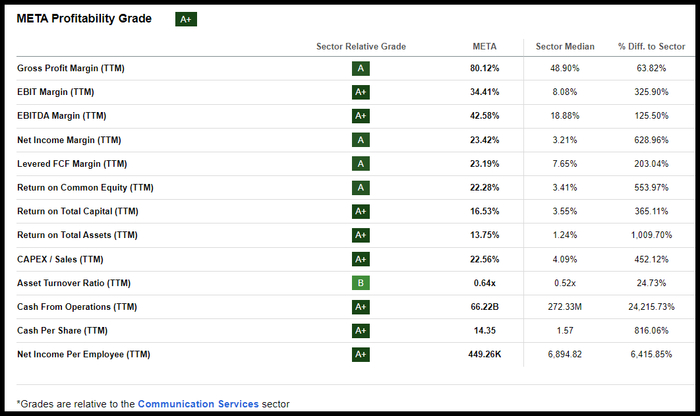 Meta是一家受欢迎的通信和创新公司,它允许人们与朋友联系和分享。Meta主要专注于人工智能和虚拟现实,开发的产品允许用户与朋友联系和分享。强劲的基本面、增长、巨大的盈利能力和持续的技术进步使其得以反弹。较去年增长194%,其强大的用户基础、Instagram和WhatsApp的货币化以及电子商务整合一直是增长动力。Meta的盈利连续好于预期,最新第三季度每股收益为4.39美元,较去年同期高出0.79美元,营收为$341.5亿,较去年同期高出+23%。