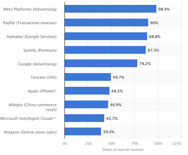 有人认为,这是目前市场上最值得拥有的通信服务股票,该公司的利润率尤其出色,其毛利率高达80.12%,而谷歌的毛利率为56.12%。