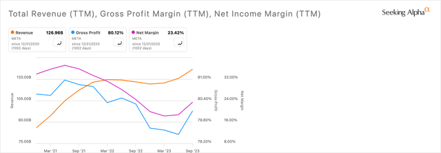 该公司的运营,特别是与公司“效率年”相关的运营,现在正在对公司的财务报告产生影响。尽管Meta的利润率非常高,而且未来看起来也因此光明,但我们有理由对该公司的收入增长率表示怀疑。由于Meta的主要收入来源是广告,该业务在很大程度上依赖于持续的用户增长和相关的广告支出来保持收入增长。如果公司能够继续通过人工智能、成本削减和精益组织来优化效率,那么考虑Facebook的高增长阶段已经结束,进入一个新的、较慢的收入增长阶段,但利润率更高的潜在时期即将到来,可能更为合理。结构越来越注重自动化。