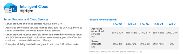 许多投资者可能会因其云业务(包括Azure)而被微软所吸引。Azure增长了28%,超过了管理层已经令人印象深刻的25%增长指导。微软似乎受益于与OpenAI的合作,因为客户在云支出决策中无疑会优先考虑生成式AI功能。