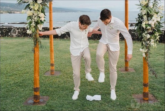 钛媒体App据网络图片观察到,在婚礼当天,奥特曼和奥利都穿着适宜搭配的服装,一身白色衬衫、浅米色裤子和白色运动鞋,象征着纯洁的恋情。