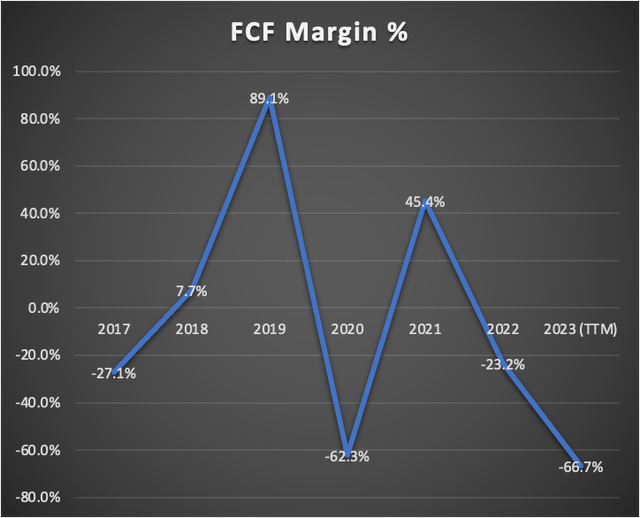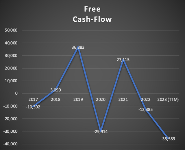 自由现金流为负355.8亿美元。摩根士丹利在此期间的平均自由现金流利润率为-5.4%。