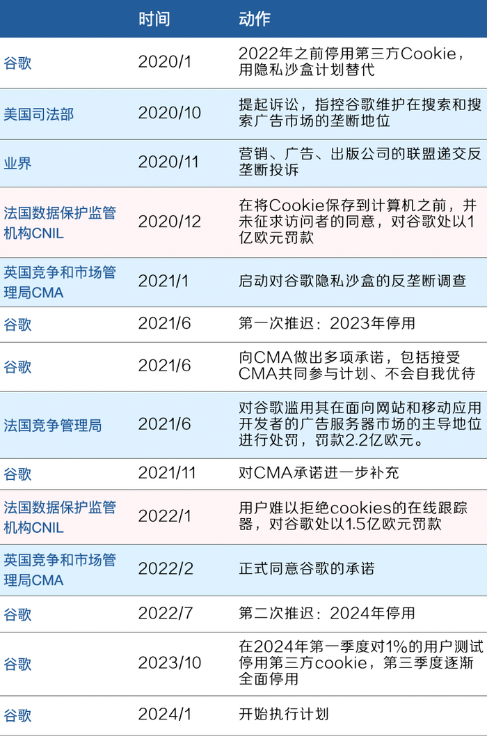 过去这几年,第三方Cookie禁令走得磕磕绊绊。谷歌面临的问题是,罚单越来越密集,改变迫在眉睫,但总受到广告商和反垄断机构的掣肘。