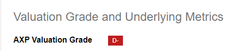 量化评级给予AXP股票“D-”,我认为这是由于银行股在金融领域的估值相对较低。对美国运通更准确的比较是与Visa和Mastercard等产品进行比较,在这方面,美国运通看起来被低估了。
