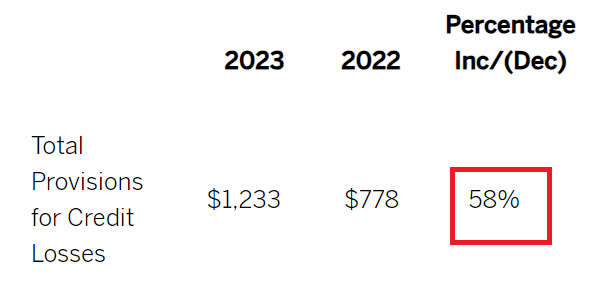 美国运通在2023年10月报告第三季度时强调了其连续第6个季度创纪录的收入。11月份的信用卡指标显示,信用卡指标已回归季节性。从理论上讲,这应该有助于像美国运通这样的公司,然而,美国运通报告称,与2022年第三季度相比,2023年第三季度的信用损失准备金增长了58%。第四季度的这一数字应该可以让我们了解美国运通对经济和消费者弹性的信心程度。