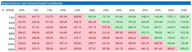 考虑到这些假设,我计算出股票的基本目标价格约为 680 美元/股。