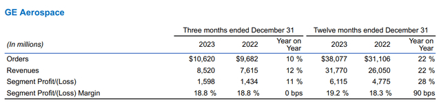 通用电气的航空航天部门业务强劲增长,并报告称2023年自由现金流大幅增加。2024年的预测意味着该公司也将实现强劲增长。通用电气航空航天公司目前是通用电气内部最大的销售贡献者,其利润是第二大部门能源部门的两倍多,该公司的订单正在强劲增长。