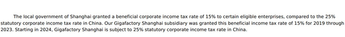 特斯拉也透露,当初来上海建厂时,当地政府给予了15%的优惠企业所得税率政策,这项政策已经于2023年底到期。从2024年开始,特斯拉上海工厂将按照25%的国家标准缴纳所得税。