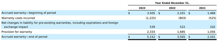 10K表中透露,特斯拉2023年在保修方面的支出为12.25亿美元,较2022年的8亿美元上升一半。考虑到市面上存量特斯拉汽车越来越多,费用的上升也在情理之中。更关键的是,特斯拉为每辆保修期内的车支出的平均费用为250美元,这一点与2022年一样。从比例来讲,占汽车销售营收1.5%的保修支出,也与整个汽车行业相近。