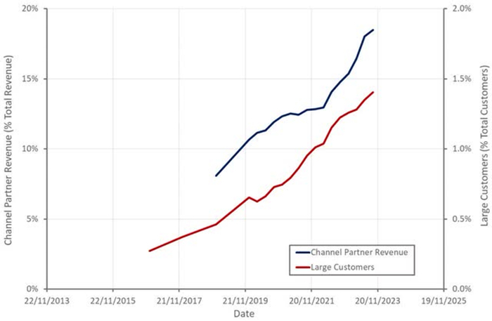 Cloudflare 解雇了表现不佳的员工,并继续完善其上市策略。虽然渠道成交率和销售人员生产力保持稳定,但尚不清楚 Cloudflare 的销售问题已在多大程度上得到解决。Cloudflare 的大客户数量仍然相对较少,来自渠道合作伙伴的销售比例也较低。Cloudflare 的增长率也没有达到表明销售效率发生巨大转变的程度。这可能只是因为任何变化产生影响还为时过早。