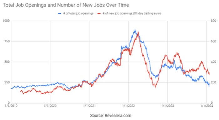 Cloudflare 的招聘也支持了较低级别的稳定。第三季度Cloudflare 员工人数同比增长 11%至 3529 人。职位空缺数量也在持续下降。Cloudflare 多次表示,招聘将符合市场状况和增长预期。