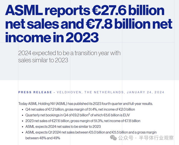 在光刻机巨头ASML发布的2023年第三季度的报告中,EUV光刻机的预定额为5亿欧元,而到了第四季度,预定额陡然增加到了56亿欧元,整整翻了十倍之多。