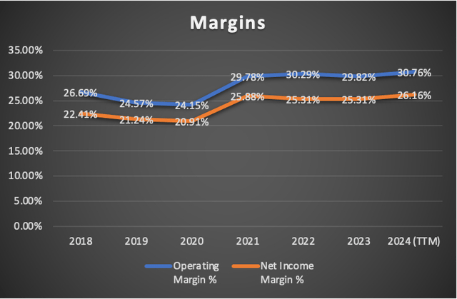 利润率也显著提高。营业利润率从上一季度的29.82%上升到30.76%,而净利润率则从25.31%上升到26.16%。