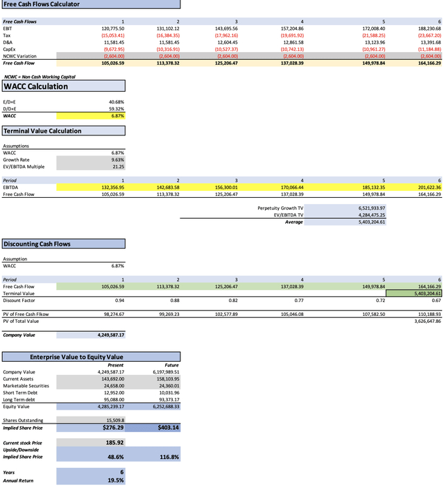 计算表明,苹果的公允价格约为300.73美元,这比当前股价有61.8%的上涨空间。此外,该模型还表明,到2029年,该股的价格应达到439.27美元,年回报率达到22.7%。