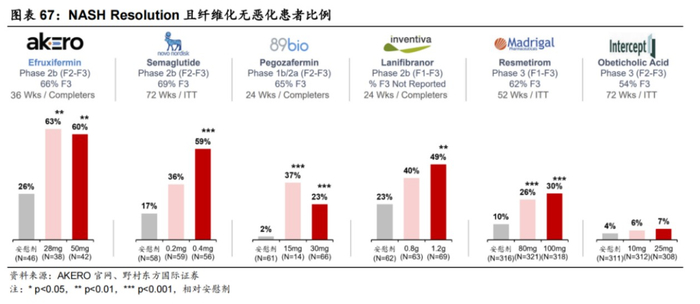 若要取得病理学验证的成功,药企需要证明患者用药后至少满足以下一条标准:1)患者病理学评分(NAS)改善且肝纤维化无进展;2)患者肝纤维化改善且NAS评分无恶化。