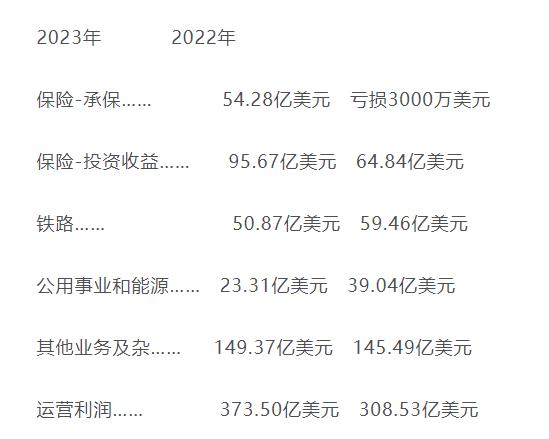然而,我们感到不舒服。在伯克希尔,我们的观点是,“收益”应该是一个明智的概念,伯蒂会发现在评估企业时会有一些用处,但只是作为一个起点。因此,伯克希尔还向伯蒂和你报告我们所说的“运营收益”。以下是他们讲述的故事:2021年的运营收益为276亿美元;2022年为309亿美元,2023年为374亿美元。