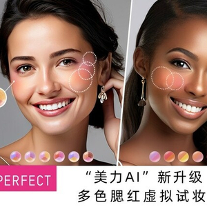 独特的3D多色腮红试妆解决方案提供多种腮红配色、妆效可定制,标志着超逼真虚拟试妆已提升至全新水平