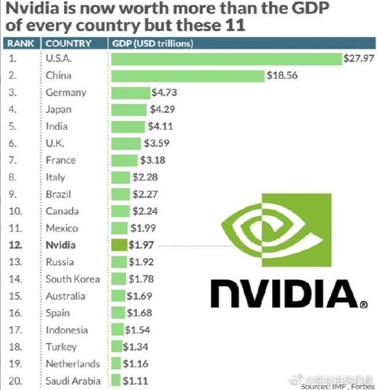 英伟达的市值已经超过了俄罗斯、韩国和澳大利亚等国家的经济规模。