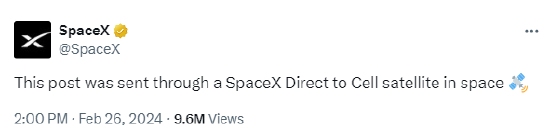 同样,这一次也是通过所谓的“卫星到蜂窝”(Direct to Cell)技术来实现的。SpaceX在X平台上称:“这条消息就是通过我们的‘卫星到蜂窝’技术发布的。”