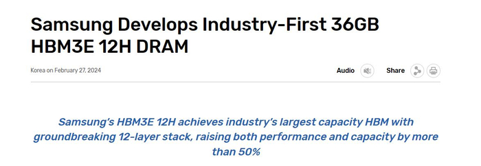 业界最大容量HBM问世!三星推出36GB新品满足AI应用更高需求