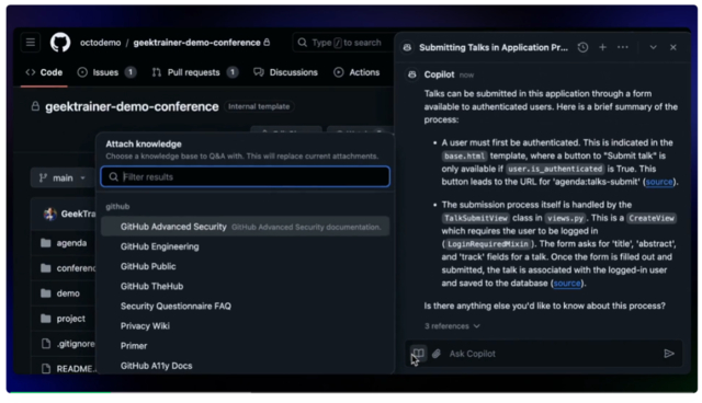 本次全面上市的GitHub Copilot Enterprise主要有三大创新功能。