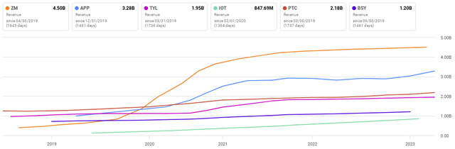 从同一组同行中,我们还可以看到其总收入要高得多,这表明我预计其竞争实力和市场主导地位将继续下去: