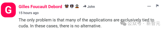 有网友认为,现在唯一的问题是,许多应用程序都与CUDA完全绑定,别无选择。