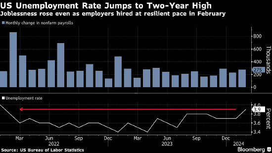 美国2月招聘表现依然健康,但失业率攀升至两年高点,显示劳动力市场仍有韧性,但有所降温。