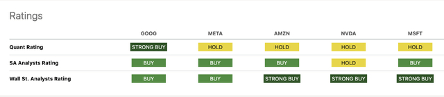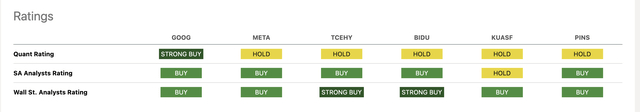 深入研究与同行的比较,我们可以发现谷歌是唯一一家全面给予“买入”或“强烈买入”评级的公司,而其他公司则有些好坏参半。