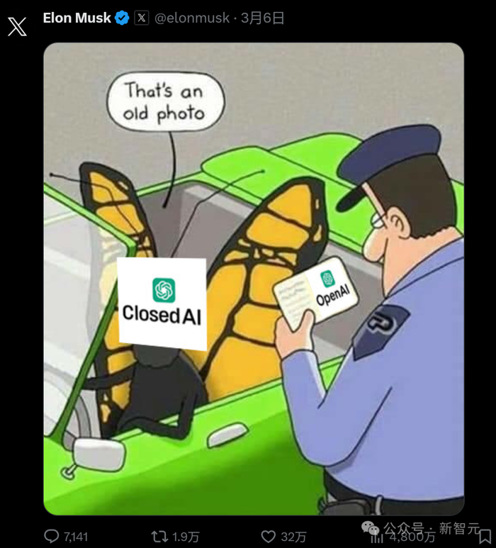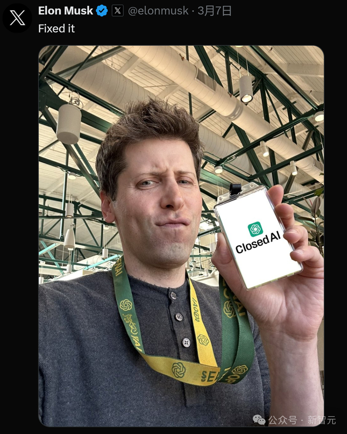 在跟Grok学习了嘲讽技术之后,马斯克公开批评OpenAI忘记初心,建议更名为「ClosedAI」。