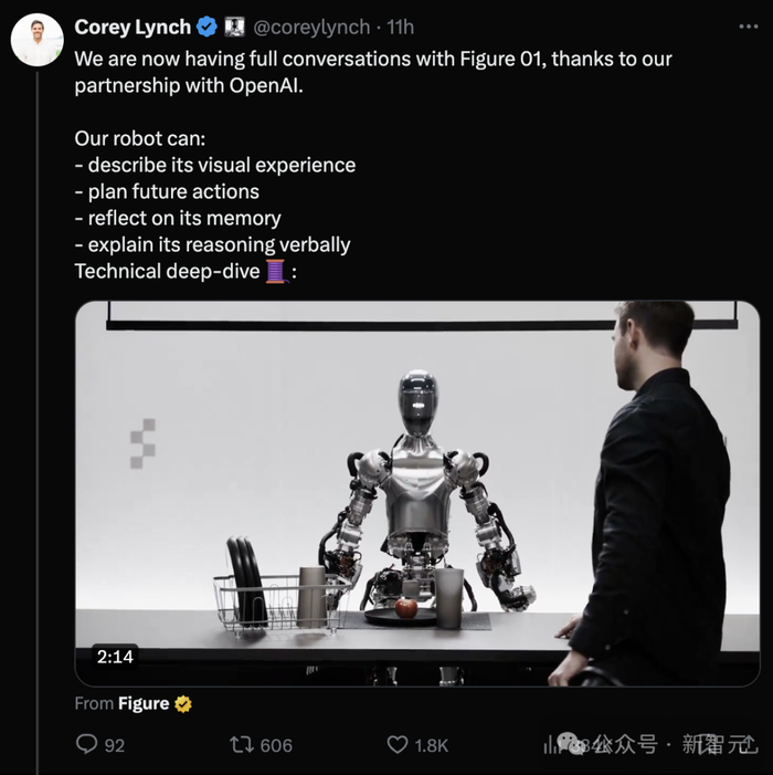 Figure AI的创始人Corey Lynch亲自在X解释了Figure 01的工作原理。