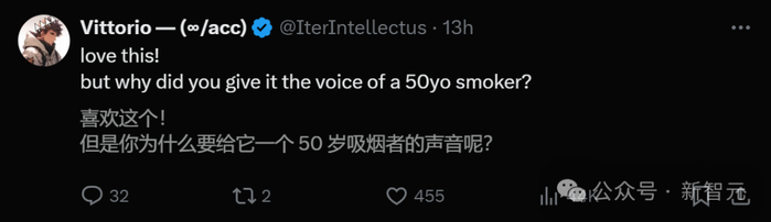 另外还有人吐槽了Figure 01的声音,为啥搞得像一个50岁的吸烟人士……