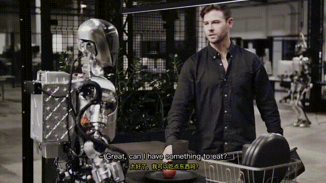 这个名为Figure 01的机器人,充分展示了和人类以及环境交互的能力。它会说会看,还能给人类递食物、捡垃圾、收拾碗筷。