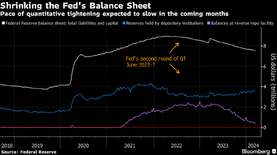 尽管市场指标表明银行准备金仍然充裕,但一些迹象显示美联储可能是时候开始考虑放慢缩表步伐了。