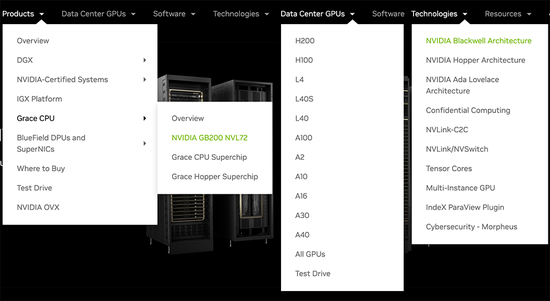 ▲英伟达官网目录截图拼接(绿色部分为本届GTC大会发布新品)