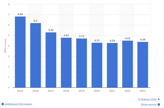 事实上,该公司对其播客业务做了类似的事情。Spotify 是播客领域的先行者,与顶级播客签署了协议,根据预测,到 2025 年, Spotify 有望击败 Apple Music 。利用去年在播客领域的领先地位,该公司于去年 11 月在部分市场推出了广告市场。所有这些产品和功能的推出应该有助于该公司重振其 ARPU(每用户平均收入),尤其是高级 ARPU,如下所示。