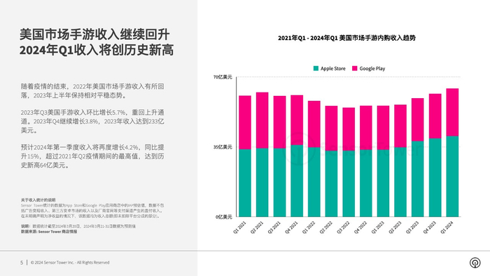 Sensor Tower:美国市场手游收入回暖 预计2024年Q1突破64亿美元 迎历史新高
